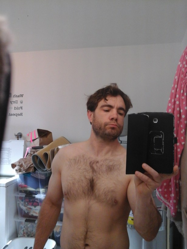 I know, they’re not good before and after pictures; it would have been good if I had taken one when I was at 210, but truth be told I was too self-conscious. Both of these pictures were taken on a Sunday – so, hadn’t exercised thus there’s no muscular swelling anywhere. While the first has bad lighting, it still looks like I have less fat in the mid-section and slightly more definition. But like I said, the second picture also represents me 5 lbs heavier, so I am fairly confident, all joking aside, that the weight increase is mainly in lean mass.
